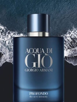 Acqua di Giò Profondo EDP is an aquatic-aromatic fragrance with notes of marine accords, bergamot, lavender, and patchouli, evoking the freedom and mystery of the deep blue sea.