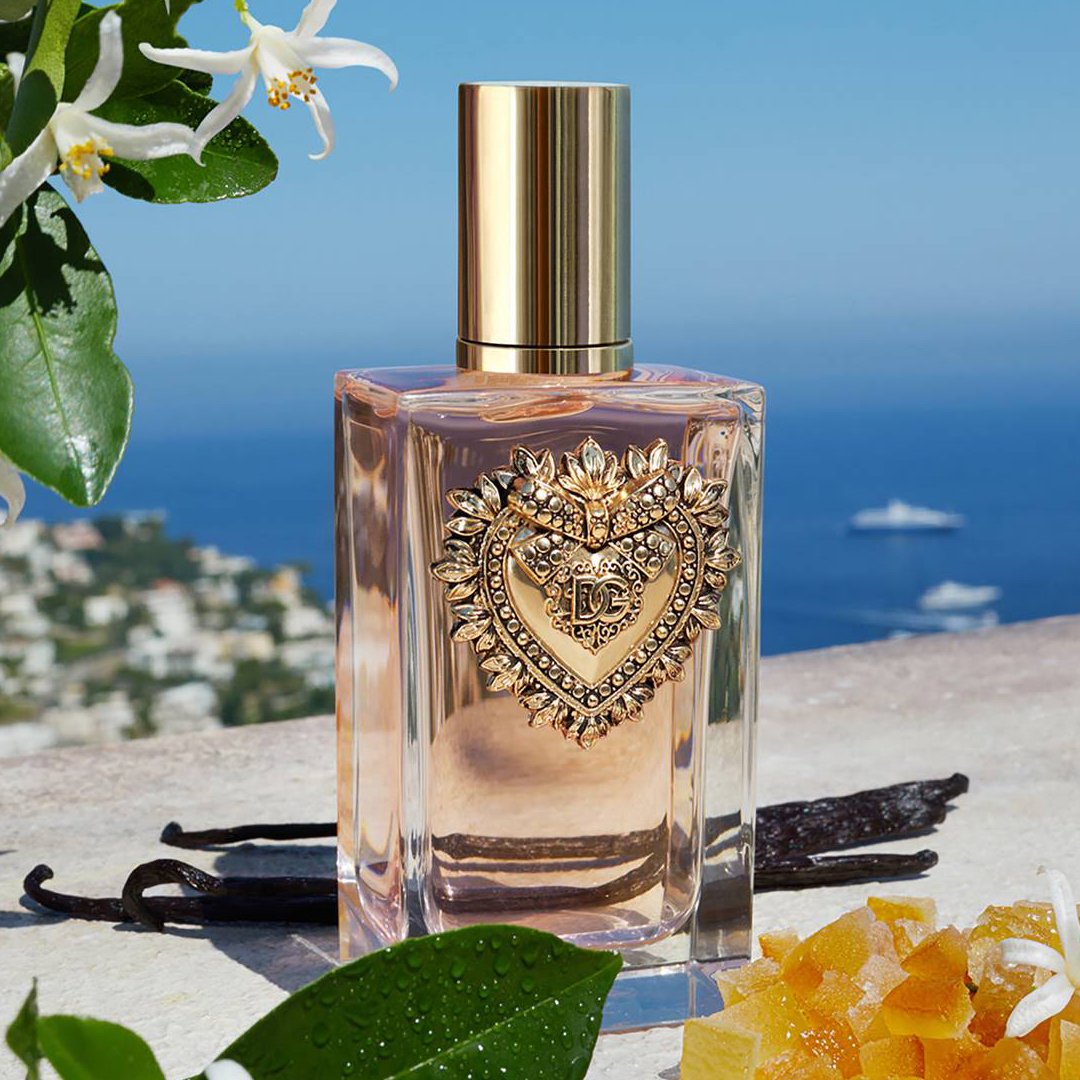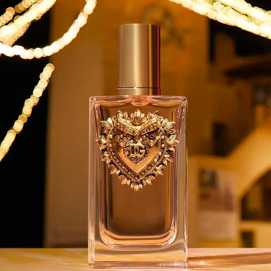 Dolce&Gabbana Devotion EDP is a warm, floral fragrance with notes of jasmine, rose, vanilla, and patchouli, offering a captivating and passionate scent that embodies love and devotion.