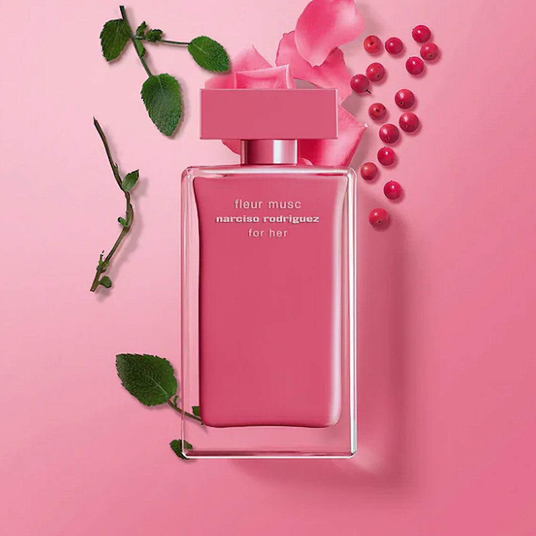Fleur Musc by Narciso Rodriguez is a vibrant floral fragrance with notes of rose, pink pepper, musk, and patchouli, creating a bold, elegant scent that is both sensual and sophisticated.