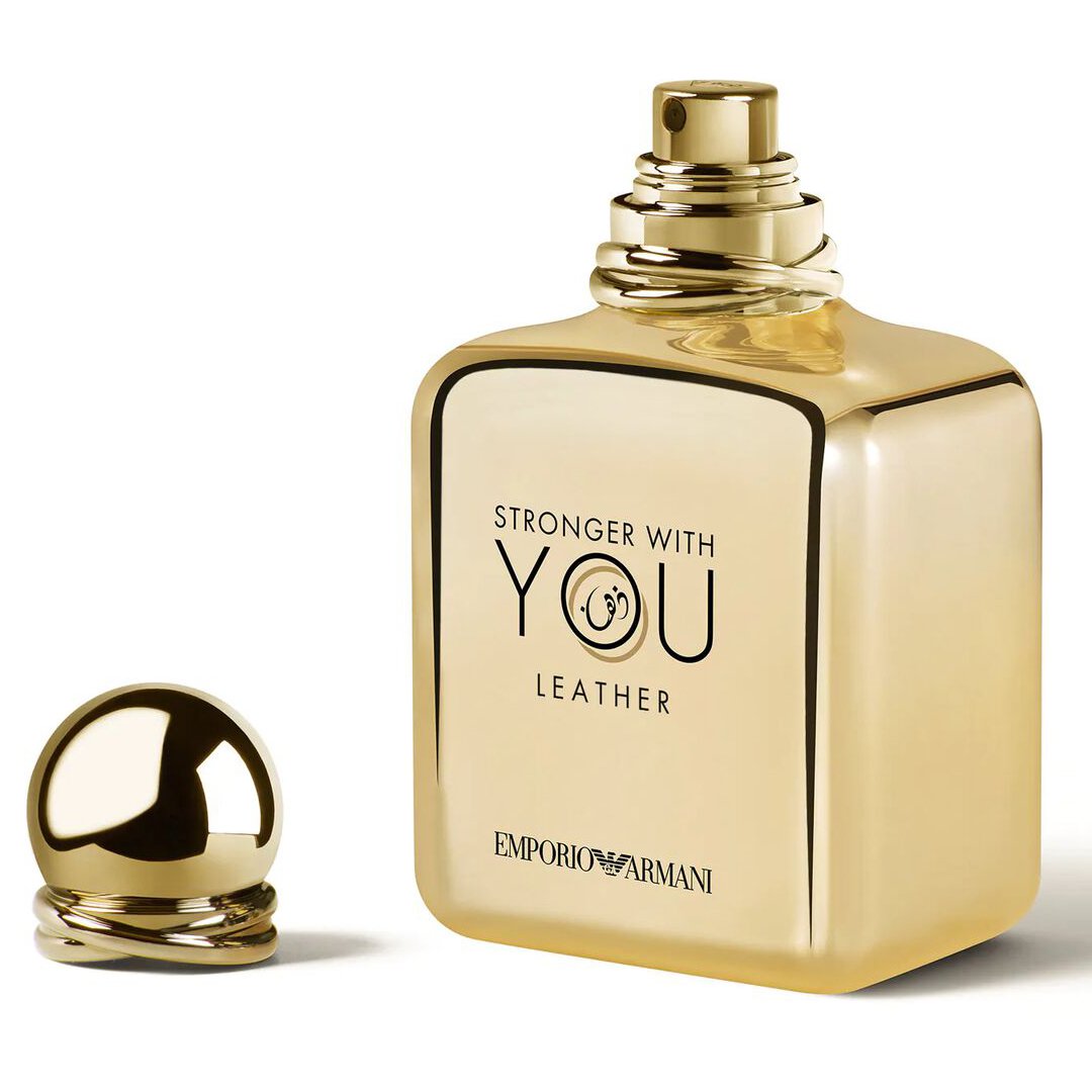 Stronger With You Leather EDP is a bold, woody-spicy fragrance with notes of leather, vanilla, cinnamon, and amber, offering a rich, masculine scent that embodies strength and elegance.